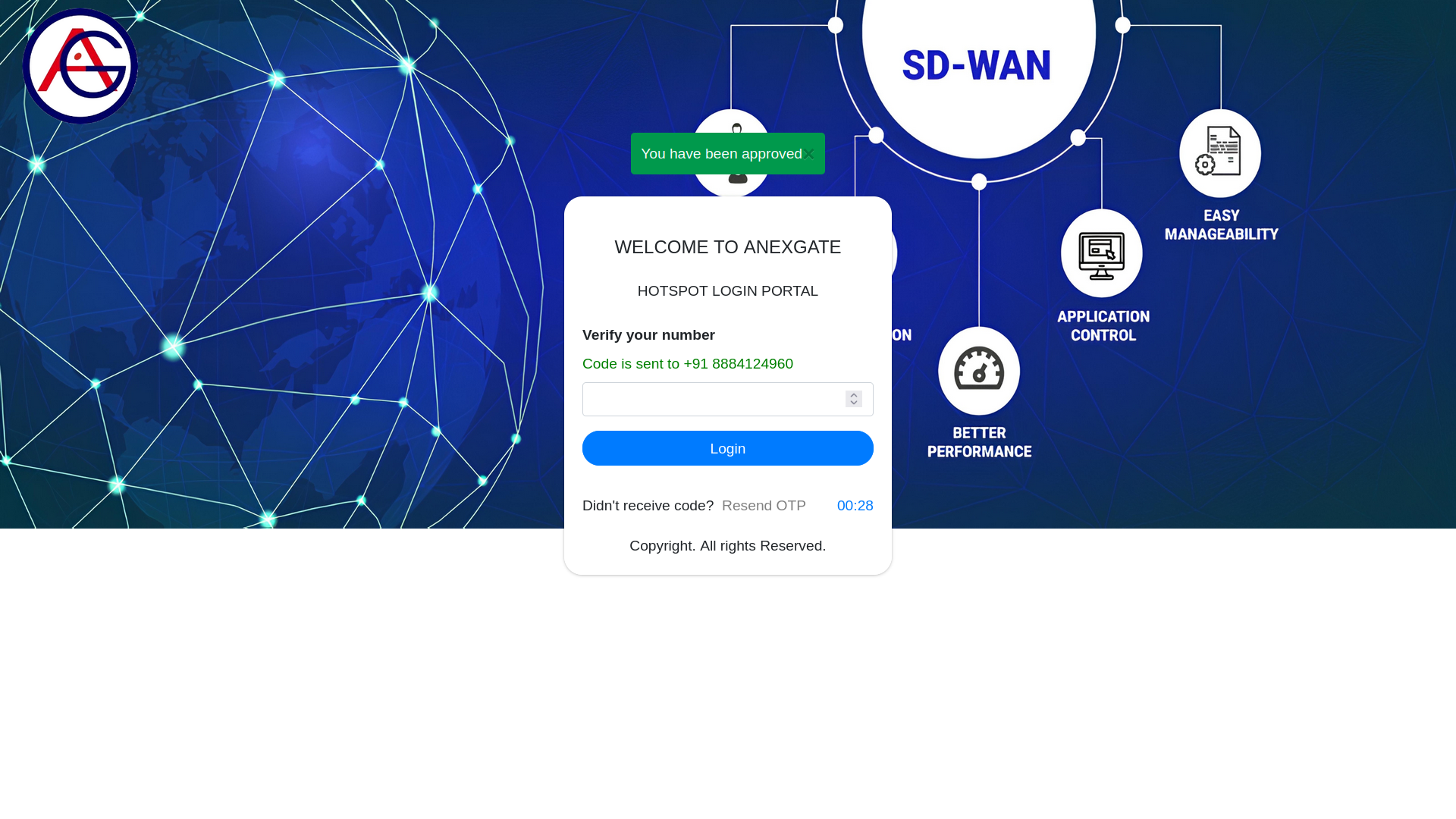 The user will get a captive portal page as image shown below where the administrator has to either ALLOW or REJECT the user session for the second time.