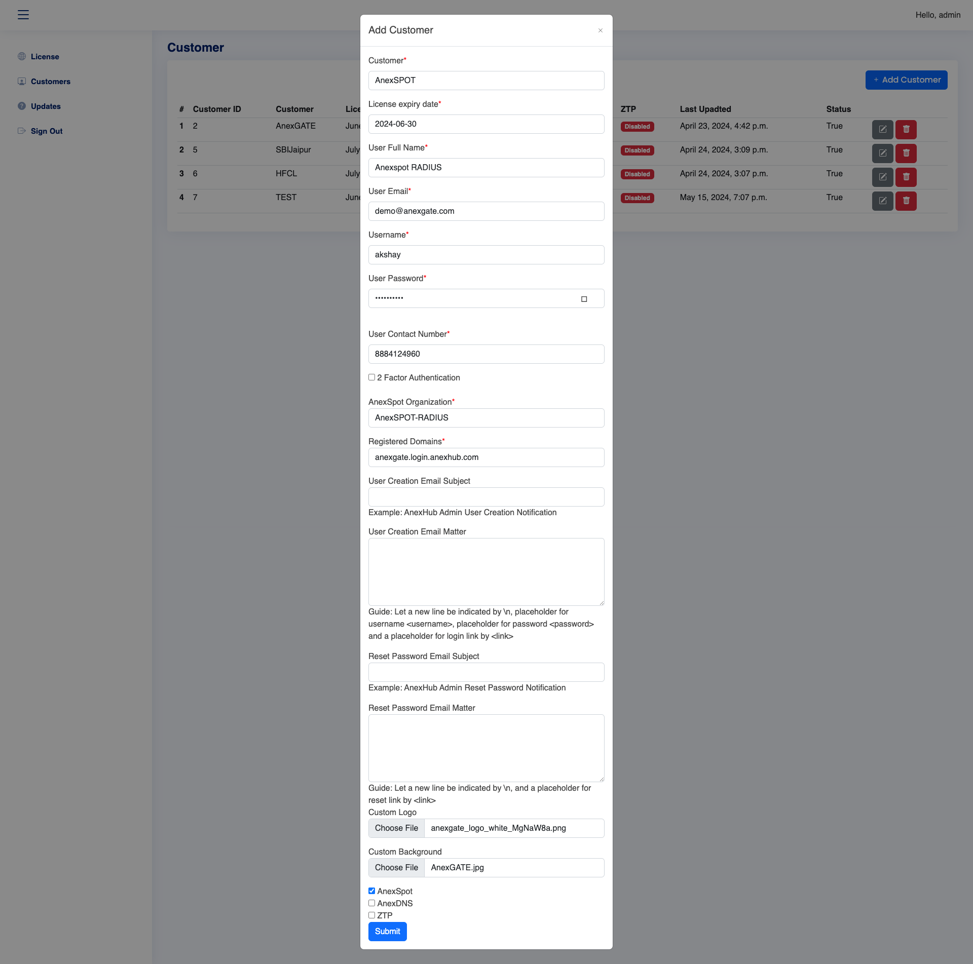 | License Expiry Date | Specify the Expiry Date for the Customer Portal |