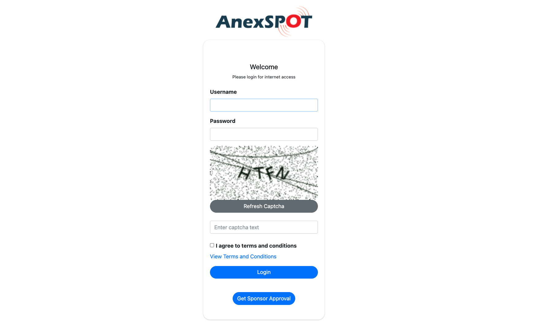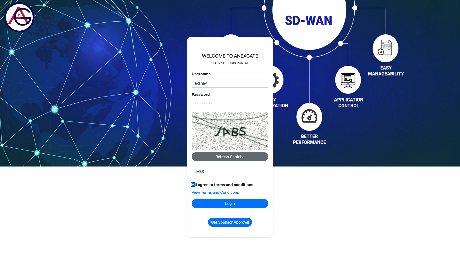 The user may provide their information by clicking on Get Sponsor Approval Option and get approved by the sponsors for accessing the internet.