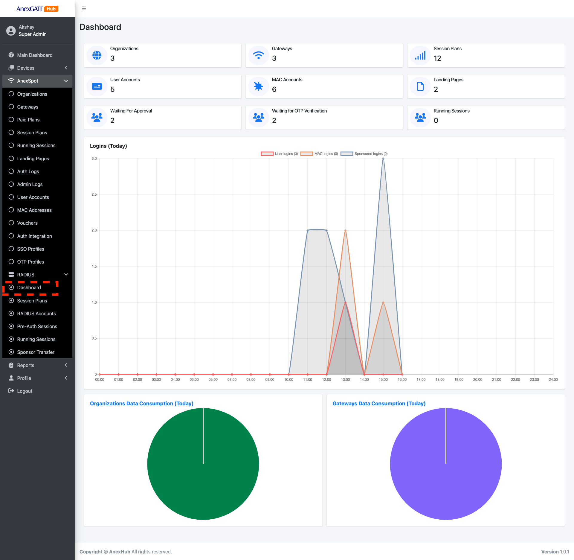 ANexSPOT Radius Server can be configured under AnexSPOT > RADIUS.