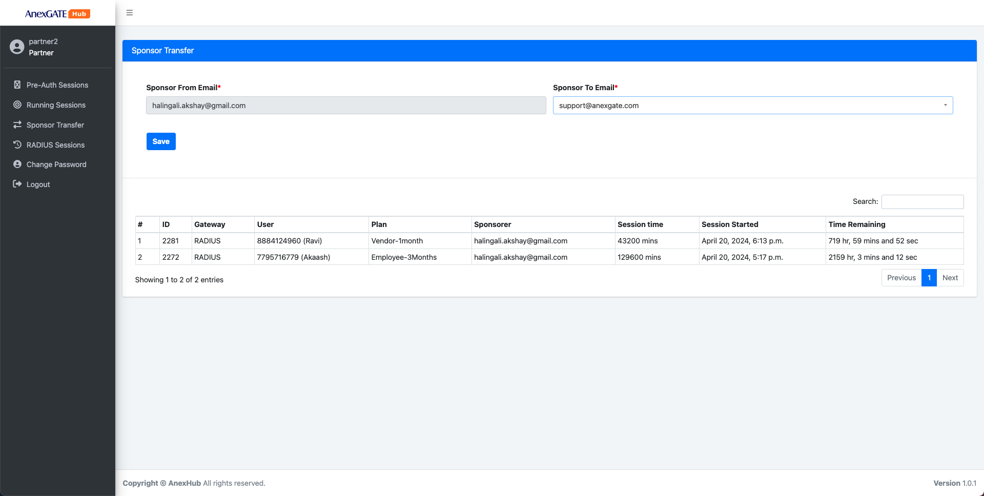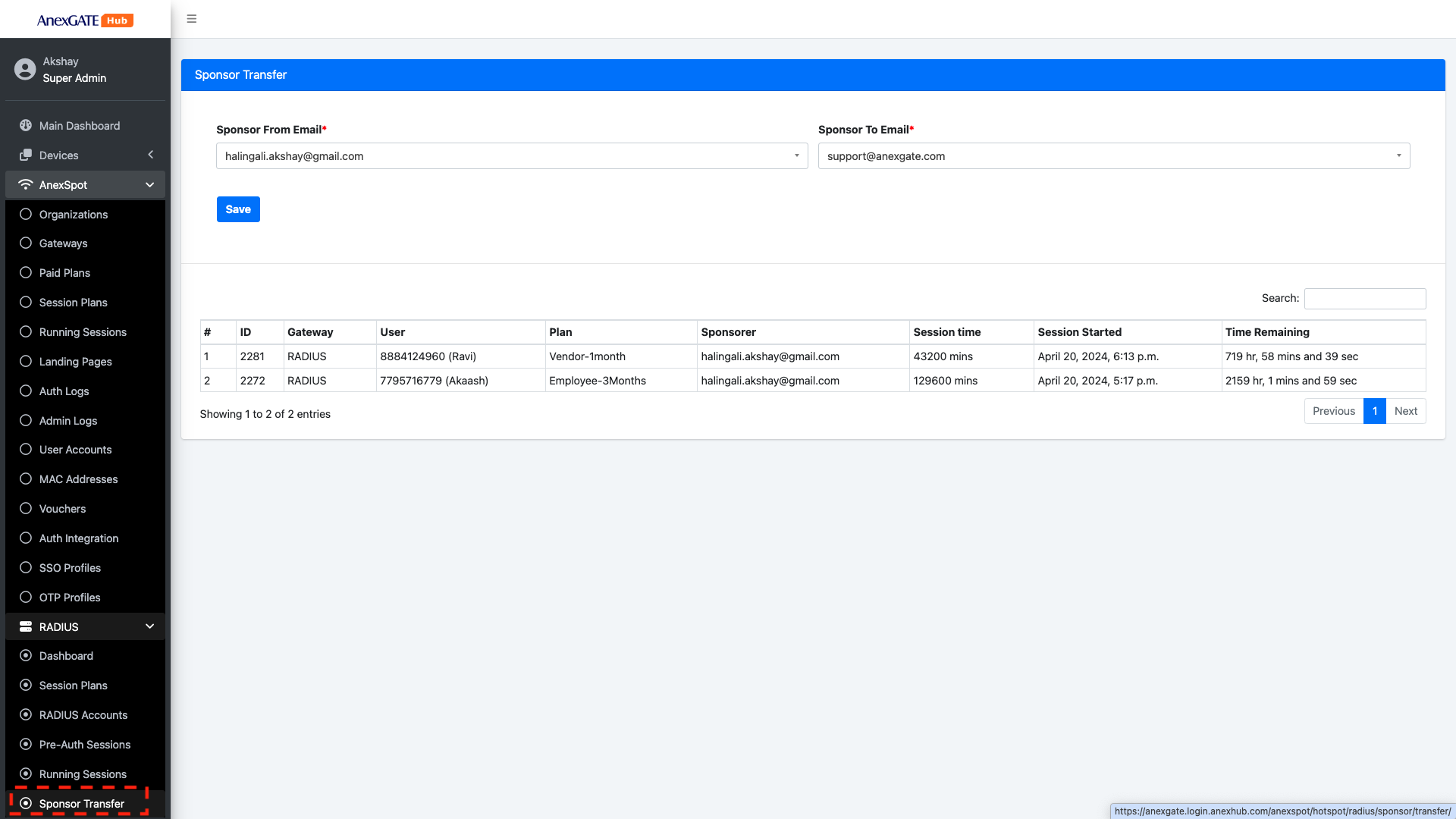 AnexSPOT - RADIUS - Sponsor TransferSponsor Transfer can be carried out by both Super Admin as well as the Partner under their respective Portal accounts.